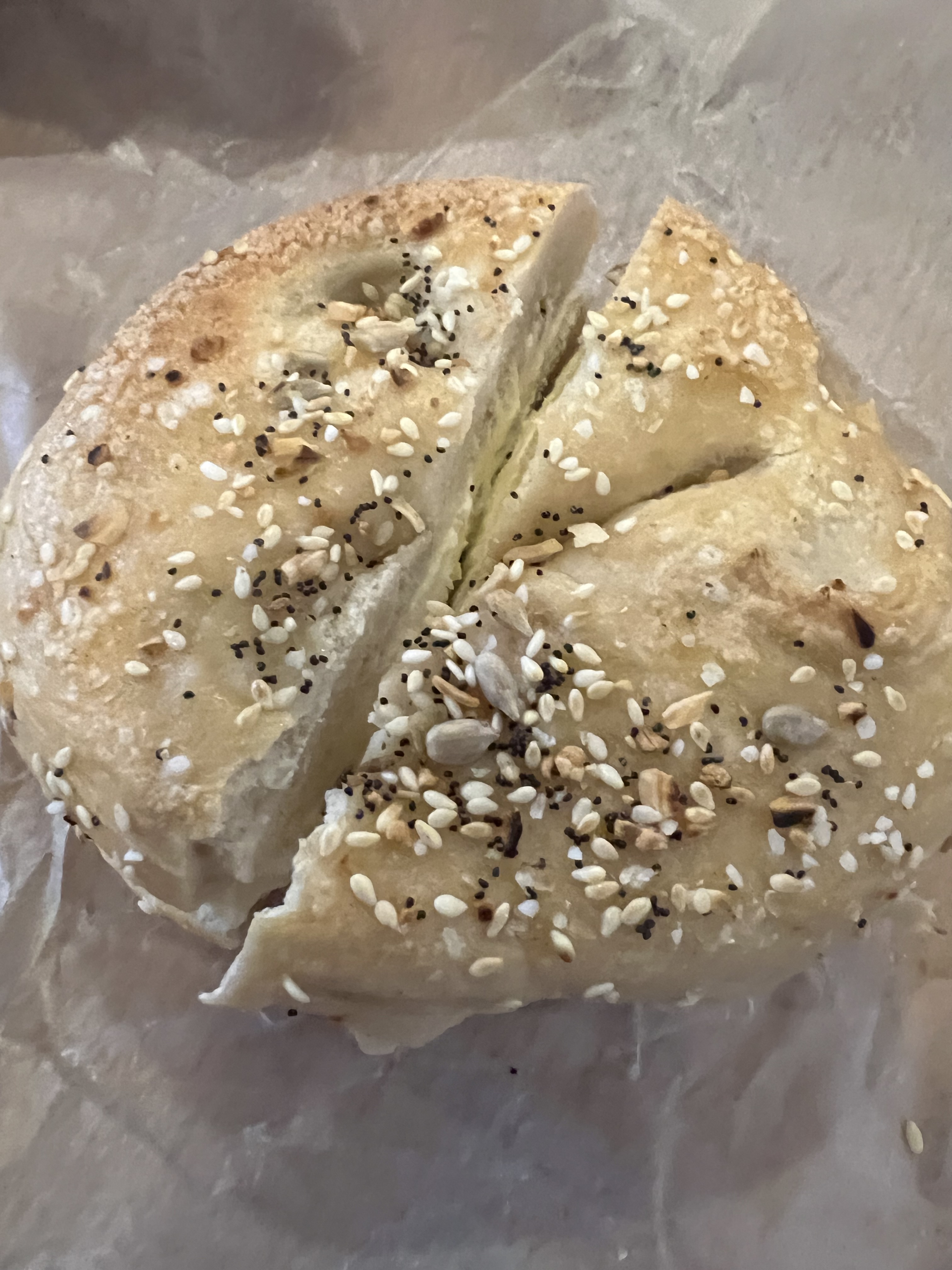 The bagels were flavorful but a bit salty. I did like the flavor. The bagels were underproofed. The everything was overly coated in poppy. This should be illegal: