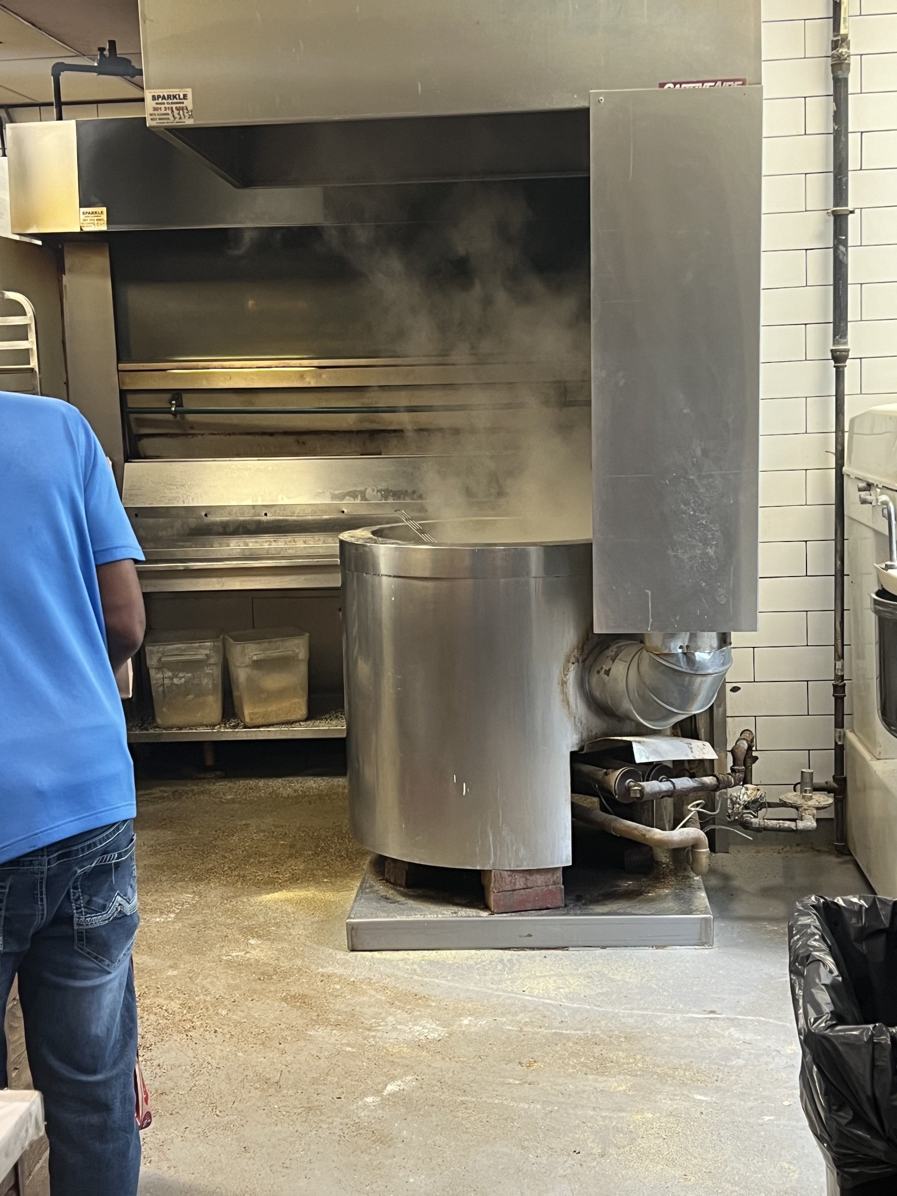 This is what a bagel shop should be. Proud display of a wide variety of bagels, stacks of flour bags on the floor and a massive boiling kettle of water with steam making the place feel like a rain forest.