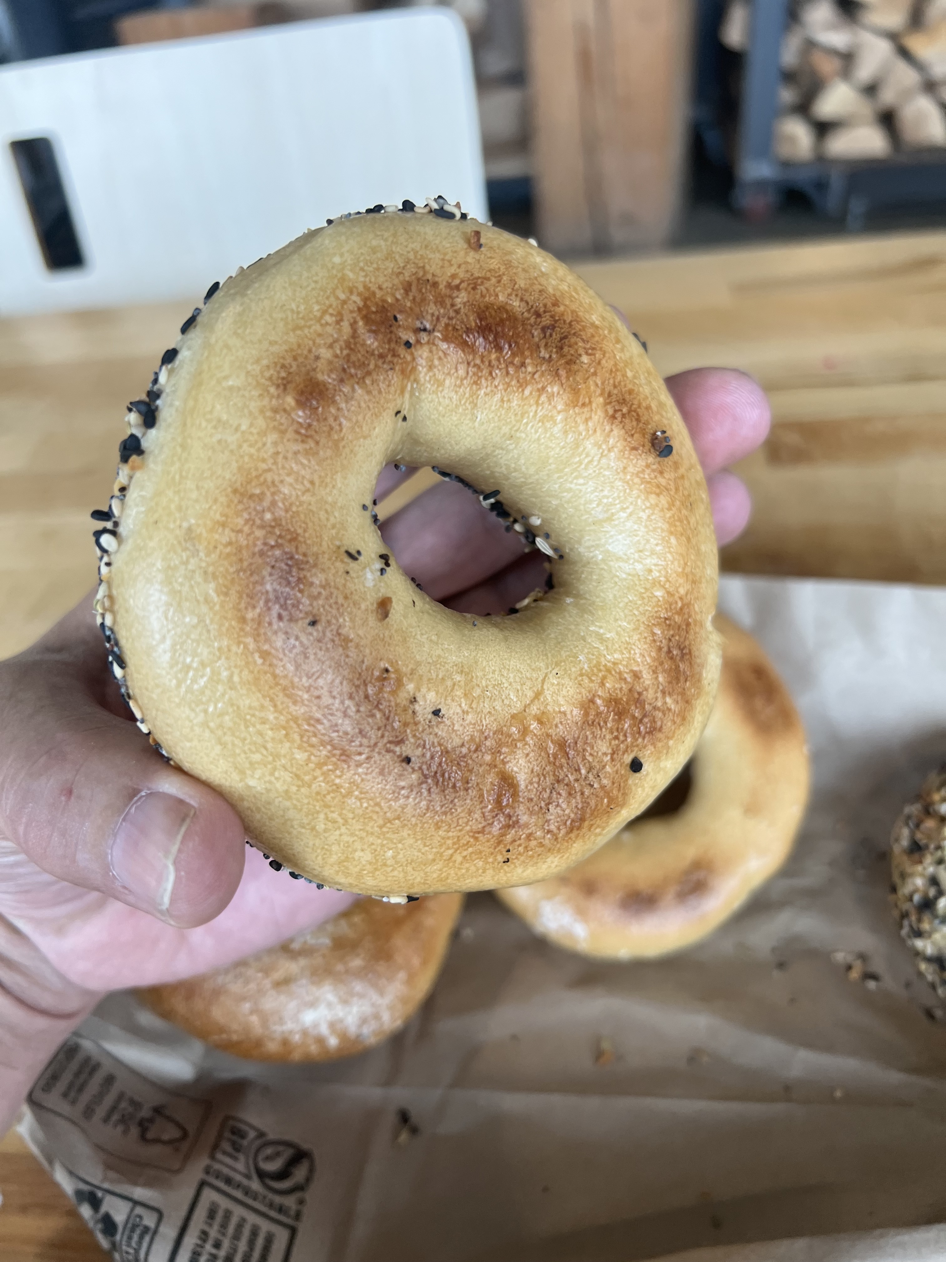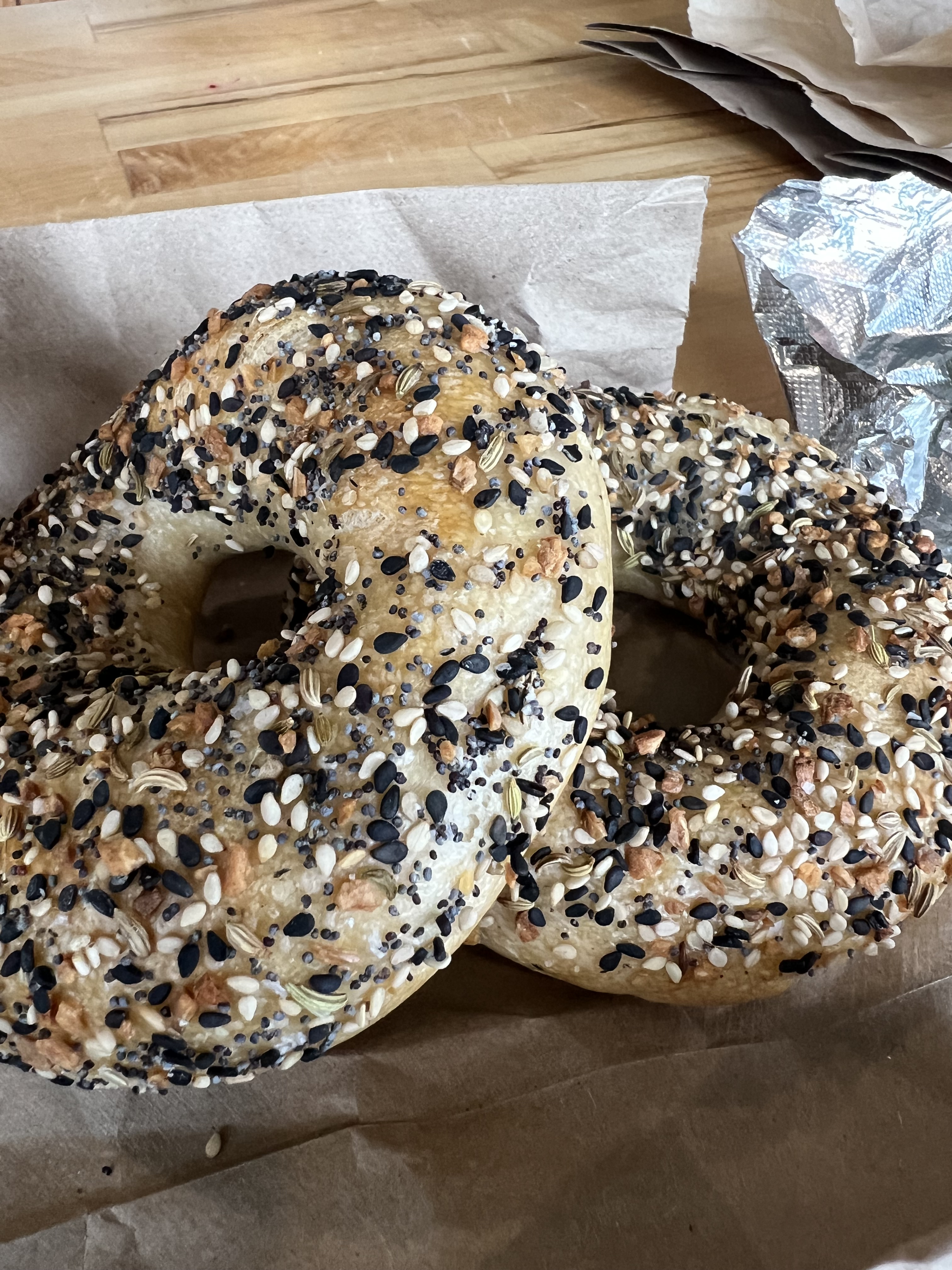 The bagels were flavorful but a bit salty. I did like the flavor. The bagels were underproofed. The everything was overly coated in poppy. This should be illegal: